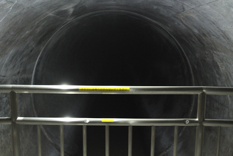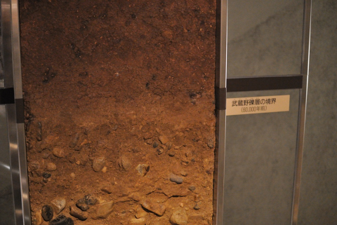 地下5階まで、螺旋状階段の中心にその深さの地層がそのまま展示されています。