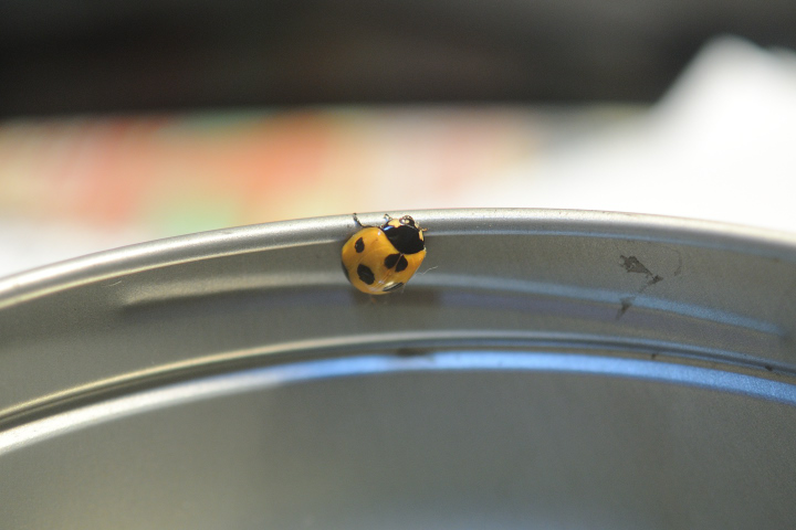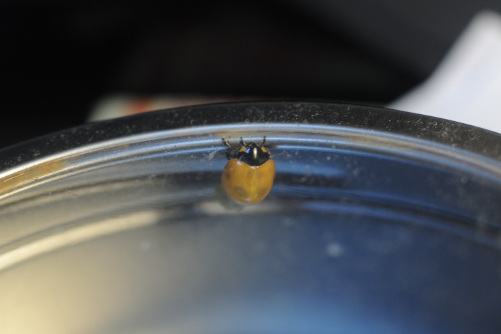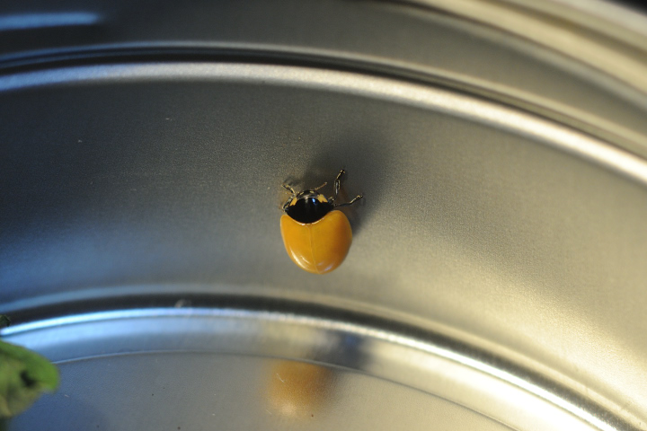 キイロテントウ!...じゃないよ。ナナホシテントウなんですが、完全な黄色で模様もありません。