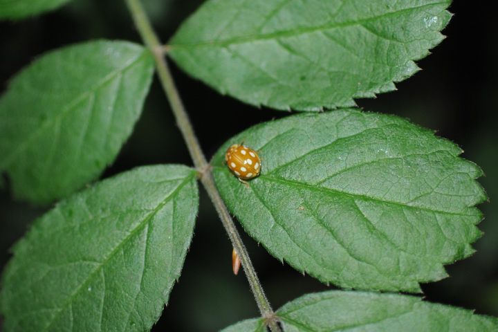似た種類が多すぎて、同定の難しいハムシの一種。