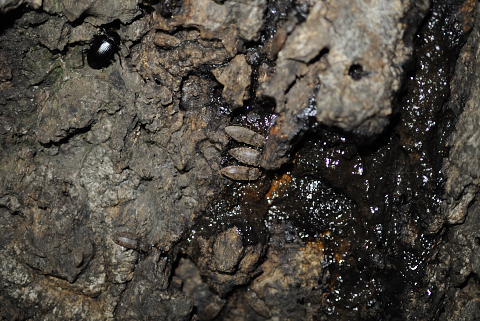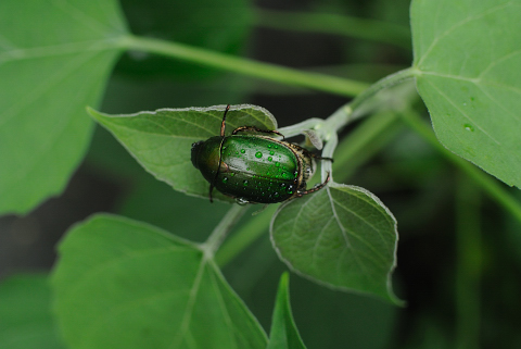 分かりにくい写真ですが、コメツキムシの仲間のサビキコリが7〜8頭ほど集まっています。