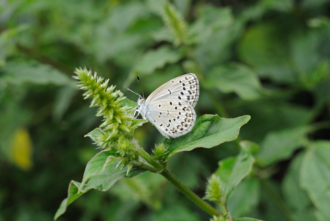 シジミチョウの仲間。普通種ですが、翅の表側はかなりきれいな青紫色です。
