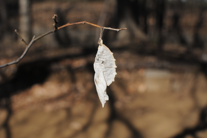 アカボシゴマダラ蛹の抜け殻 玉川上水でアカボシゴマダラ蛹の抜け殻が見つかりました。 この時期に見つかったことはちょっと驚き。 いや、2月に抜け殻が残っていることは何も不思議ではなく珍しいことでもないのですが、見つかった場所は何度も何度も通っている(普段の散策でも、観察会でも、その下見でも)場所で、抜け殻があれば見逃すはずがないのです。 ...ということは、最近羽化したもの?