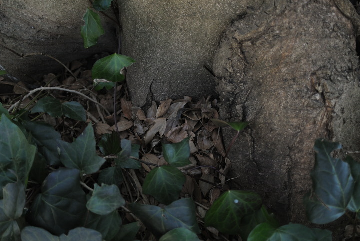しっかりと冷える北側に、落ち葉がまとまって溜まっている場所があったらあやしい!