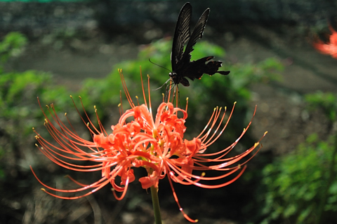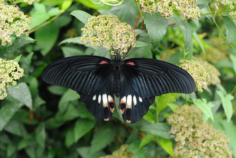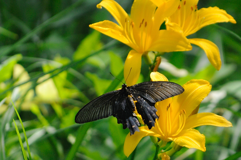 クロアゲハ?ジャコウアゲハ?体は赤く見えないけれど。