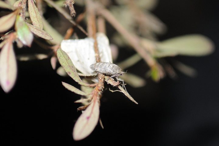 クロテンフユシャクの交尾 玉川上水で、撮影に成功しました! クロテンフユシャクの交尾です。 ウスバフユシャクとクロテンフユシャクを見分けるのは難しい! 写真を見ると、オスの翅のラインが「く」の字に曲がっています。 はっきりと曲がっているので、クロテンフユシャクでいいはず。 観察途中にメスが動き出し、微妙に場所移動。 風の影響なのか、なんなのでしょうね。 翅が葉にぶつかってしまうオスは苦労していました。